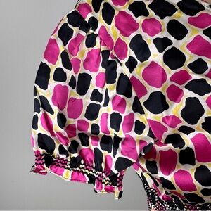 INC International Concepts Silk Blouse Sz 6 Smocked V-Neck Giraffe Pattern.