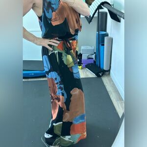 Italian made wide leg, multi colored jumpsuit. Lined and in perfect condition. 271/2 “ inseam