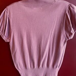 Pretty in Pink Knit Mock Neck Puffed Short Sleeve Top ready for Valentines Day