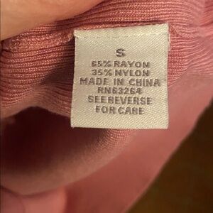 Versatile short sleeve top with lightly ribbed mock turtleneck and ribbed band at bottom light soft fabric. Can wear under a jacket, cardigan or jean jacket. Can be dressed up with a skirt, dressy slacks or casual with jeans.