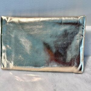 Ipsy Gold Metallic Two Zippered Pocket Cosmetic Makeup Bag with Orange Trim