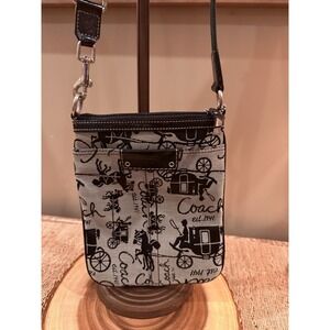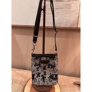 Coach Courier Crossbody Bag Horse Carriage Swing Pack Black & Grey