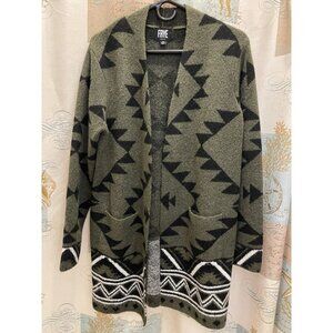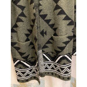 Frye Womens The Cozy Cardigan Green Navajo Tribal Western Pockets Knit Med Long