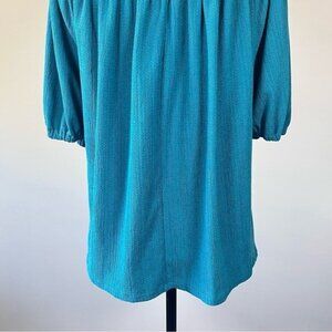 Anthropologie Elodie Turquoise Puff Sleeve Off Shoulder Top Large