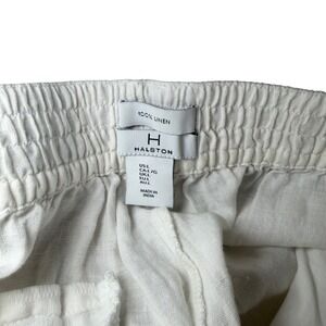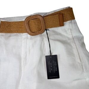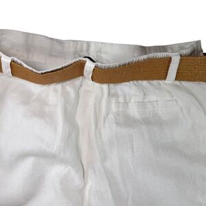 Halston Women White 100% Linen Wide Leg Cropped Pants Woven Belt Size L