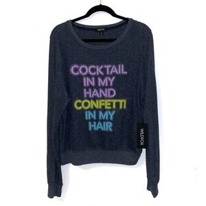 NEW Wildfox Navy Blue Cocktails & Confetti Pullover Soft Cozy Sweater Large