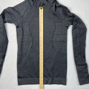 Lululemon long sleeve hooded pullover in a textured knit fabric. This is an older style and does not have the circular size dot. Slim, structured fit with a more fitted feel rather than relaxed or oversized.