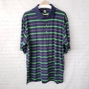 FootJoy Mens Polo Shirt XXL Green Blue Stripe Menifee Lakes Country Club Logo. Good pre-owned condition, no flaws.