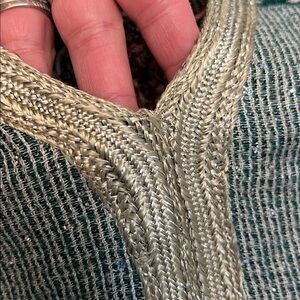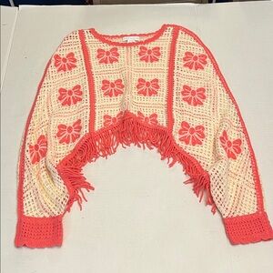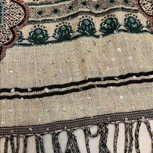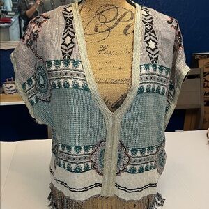 Gorgeous FARM Rio Brazil v-neck pullover blouse with fringe bottom and silver thread detail. No size tag seen but fit small- medium slight oversized. Tight knit