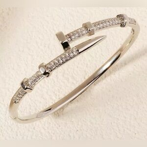 18K White Gold Nail Bolt Screw Bracelet Bangle Diamond Inlay Love Designer Inspired