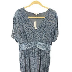 NWT Baltic Born Leslie Blue Velvet Maxi Dress 2XL Puff Sleeves Boho Formal
