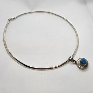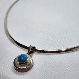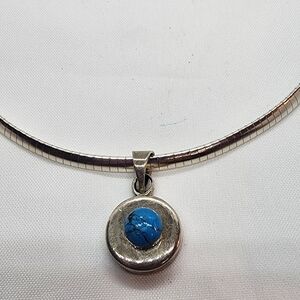 Sterling Silver Turquoise Necklace Omega Chain with Turquoise Cabochon Pendant