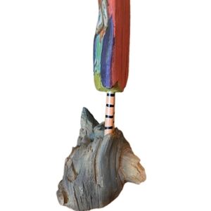 Whimsy Creations Colorful Wooden Carved OWL W/ Witch HAT 2015 Laura Benge 14.5"