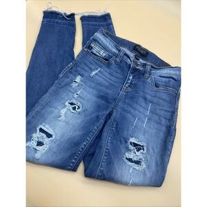 Judy Blue Jeans Womens 1/25 Skinny Fit Blue Distressed Fray Hem Stretch