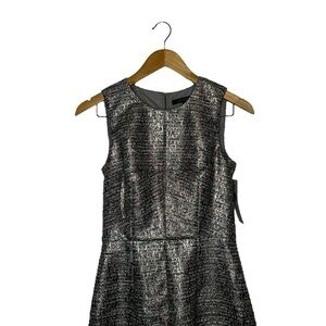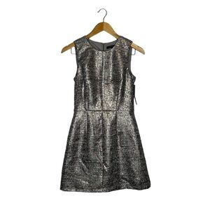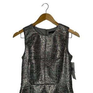 French Connection Tweed Metallic Silver Sleeveless Shift Dress Size 2