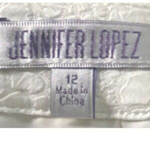 Pre-owned, excellent condition. Jennifer Lopez cream/white monochrome python print embossed skirt. Bold gold rear zipper accent. Lined skirt is made from a comfortable, durable blend of polyester and rayon.