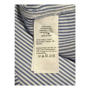 Discover charming style with this J. Crew button-up shirt. The playful vertical blue and white stripes create a classic look, while the delicate ruffle detailing along the neckline adds a touch of feminine flair and visual interest. Short sleeves with ruffled cuffs offer a comfortable and breezy feel, perfect for warmer days or layering. Button front closure allows for adjustable styling. This versatile top is ideal for casual outings, weekend brunches, or even a relaxed office environment.