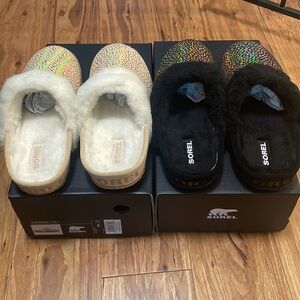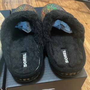 *I have listings up for sizes 2, 3, 4, 5, & 6* New, never used or even tried on. Colors are “Black, Sea Salt”(black slipper), & Ceramic, Gum 17 (light tan slipper). Listing is for one pair of slippers (chose color when adding to cart). These are Youth size 6 but that size is equivalent to a women’s size 8 (PLEASE Google size conversion Girls vs Women’s shoe size if you would like to compare sizes… but buying “youth” shoes has def saved me money when it comes to certain shoes!) most info in pictured but plz feel free to message me with any questions you may have! Price is firm. Sorel Youth Nakiska Slide II in black and tan. Comfortable and stylish slides for everyday wear.
