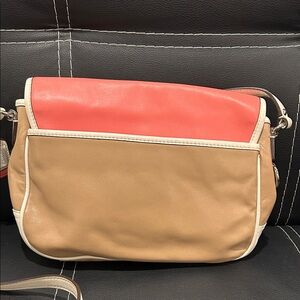 Coach Coral and Beige Leather Satchel