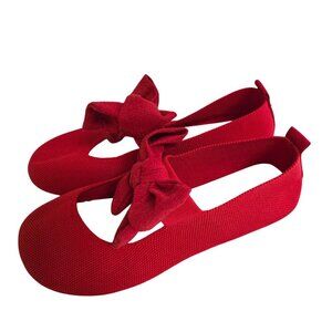 Red Bow Fabric Ballet Flats Size 40/8.5 Holiday Slip On Dress up or down