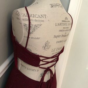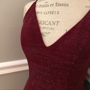 Gorgeous! 💫💫💫 Burgundy Shimmer Sleeveless Form Fit Stretch Formal Homecoming Cocktail Dress. Padded Bra, Lace Up Cut Out Back, Zip & Hook. It’s Exquisite! ✨🌹✨