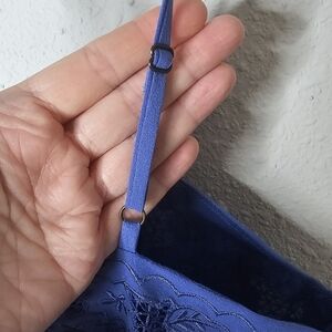 Hive & Honey Blue Mini Dress Adjustable Strap Embroidered Floral Size M Medium