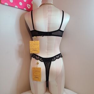 Sexy Little Things - Cheeky Ruffles Bra & Panty Set - beautiful pleated mesh & lace unlined Underwire Demi bra & matching high cut thong panty - original sample