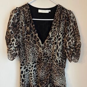 ASTR the label cheetah Animal Print ruched Midi short sleeve womens Dress M EUC