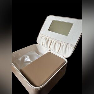 A chic beauty bundle featuring hair accessories and makeup essentials. Includes a stylish Taupe-colored case, includes small travel case. Total Value $73