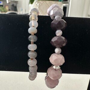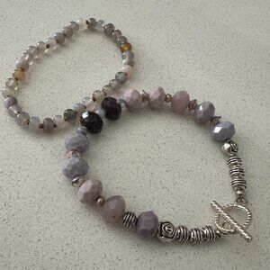 2 Lavender Glass and Acrylic Beaded Bracelets