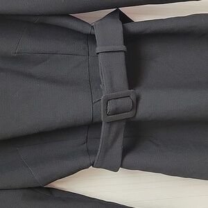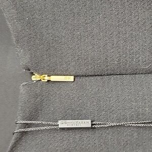 Donna Karan New York long sleeve scoop neck, back zip, belted black dress. Women's sz 8. knee length. back slit, 76% polyester, 20% rayon, 4% spandex. fully lined polyester 36" pit to pit (D5-007)