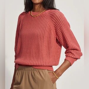 Varley Clay Coral Open Knit Crewneck Sweater 100% Cotton Size Small