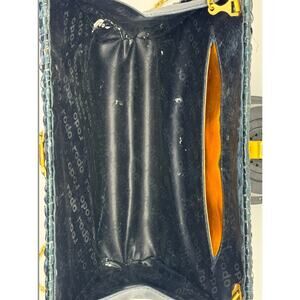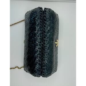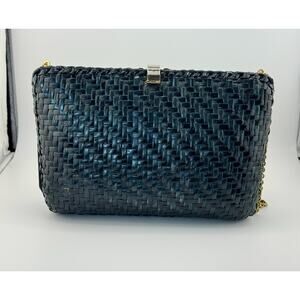 Add a touch of elegance to your outfit with this rare and beautiful RODO vintage clutch purse. Made in Italy, it features a black green wicker exterior with a glazed finish, adorned with gold hardware. The snap closure opens to reveal a lined interior with inner pockets and a pocket for other straps. Perfect for events, weddings or parties. This designer piece from the Rodo product line is a must-have for any fashion-forward woman who wants to add a touch of Italian style to her wardrobe.