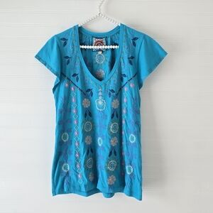 Johnny Was Oriel Flutter Sleeve Tee Embroidered Top XS