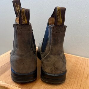 If you want work boots that you don’t have to worry about, get these! They are a fantastic, comfortable boot. Rugged and stylish Blundstone boots. Distressed brown leather. Blundstone size 6 = US 8.5 - 9.
