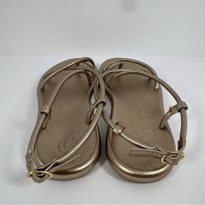 Olukai Waiau Leather Gold Strappy Flat Sandals size 6.5 7