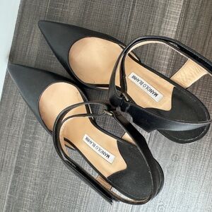 Authentic soft black leather Manolo 3 3/4” heels size 41, fits like a US 10. Soles have a protective half sole rubber liner to keep from wear.