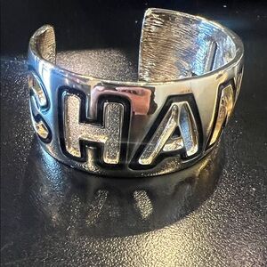 Sophisticated black beaded necklace with a striking silver Chanel emblem. Ideal for elevating any ensemble.