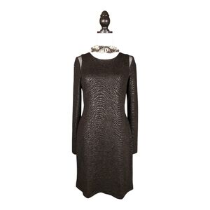 Betsey Johnson Black Animal Print Mesh Shoulder Panel Long Sleeve Dress Size 8