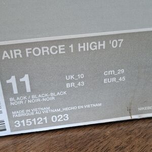 Nike Air Force 1 '07 Black/Black High-Top Sneakers Men's 11 NEW