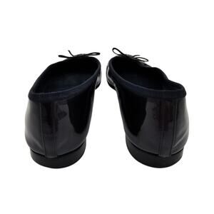 Chanel CC Cap Toe Ballet Flat Navy Patent Leather Slipper Size 37.5 US 6.5 7