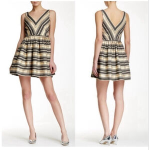 J.Crew Black Cream Striped Fit Flare Dress 4P Petite V-Neck A-Line