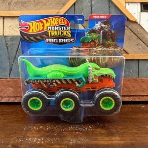 Hot Wheels Mattel Monster Trucks Big Rigs Mega-Wrex die-cast toy truck! New in packaging. 1:64 scale. Can haul your other monster trucks via the flatbed. So fun!