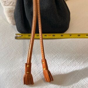 This elegant drawstring bag features a sleek black body with stylish brown accents. Perfect for any occasion, it combines fashion with functionality.