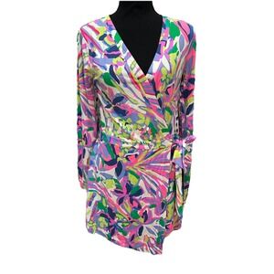 Lily Pulitzer Tiki Wrap Romper Size Small Floral Print V Neck Long Sleeve