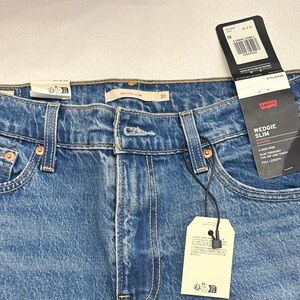 Classic Levi's straight leg jeans. Versatile blue shade. Perfect for any occasion.