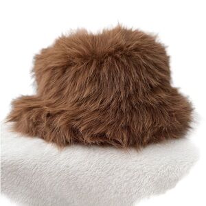 Free People Unreal Cocoa Ice Queen Faux Fur Bucket Hat OS NWT