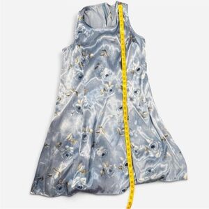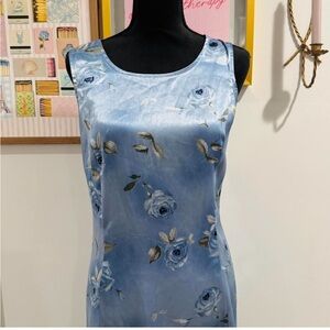 Vintage Y2K Blue Floral Satin Slip Dress Tie Back Fairycore Vintage Style Size L