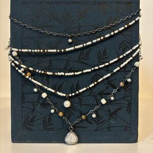 Amazing Multi-Layered Necklace with Mother of Pearl Pendant