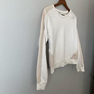 Evereve Lora Faux Leather Trim Pullover Sweatshirt Long Sleeve Cream Tan sz M